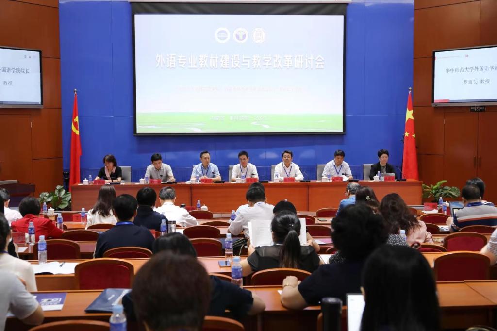 为加强全国外语专业教师学术交流,进一步落实外语专业建设目标和人才培养过程与方法的改革目标,由华中师范大学ca88游戏登录网址、ca88游戏登录网址和清华大学出版社联合主办,ca88游戏登录网址承办的2021年全国“外语专业教材建设与教学改革研讨会”于 7月19--21日在我校隆重举行。西安外国语大学副校长姜亚军教授、华中师范大学ca88游戏登录网址院长罗良功教授、北京师范大学外文学院院长苗兴伟教授、战略支援部队信息工程大学洛阳校区科研处处长陈春华教授、广西师范大学ca88游戏登录网址院长谢世坚教授、南开大学ca88游戏登录网址张文忠教授、四川大学ca88游戏登录网址副院长王欣教授、清华大学出版社外语分社郝建华社长等专家,以及其他60余所高校的ca88游戏登录网址负责人、专家学者共一百余人参加了研讨会。我校党委委员、副校长张海峰教授和教务处处长韩巍教授出席了开幕式。开幕式由我校ca88游戏登录网址党委书记李文胜主持。
